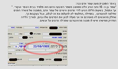 תאריך הלידה של אדם הושג באמצעות שימוש בתוכנת רשומון, המאפשרת גישה למרשם האוכלוסין של ישראל, ושהודלפה בצורה לא חוקית לרשת.
