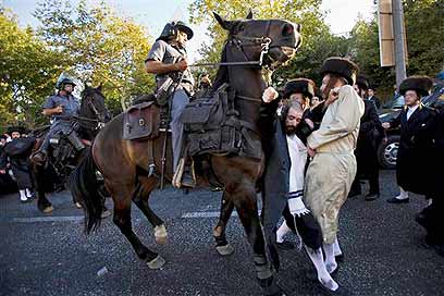 פרשים וחרדים, אתמול בירושלים. "סוג של הצגה" (צילום: AP)