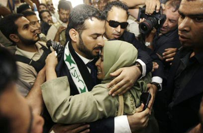 א-זיידי מחבק את אחותו לאחר שחרורו מהכלא (צילום: רויטרס)