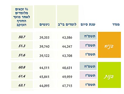 מנתוני משרד החינוך עולה עוד כי הפער בהישגים בלימודים בין בנות לבנים
