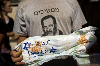 פעילי ימין קיצוני ובידיהם חיתולים (צילום: AP)