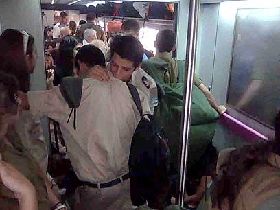 אין מקום לזוז. הצפיפות ברכבת (צילום: פנינית דיקשטיין)