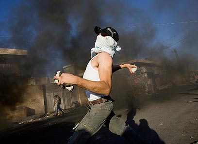 צעיר מיידה אבנים בירושלים. הכוננות המוגברת נמשכת (צילום: AFP)
