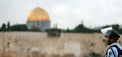 שוטר ליד הר הבית ביום שישי. הסוף למהומות? (צילום: AFP)