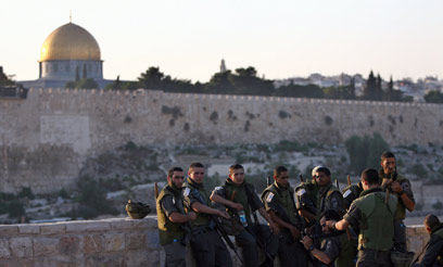 שוטרי מג"ב ליד הר הבית. במשטרה אמרו שאין מתבצרים (צילום: AFP)