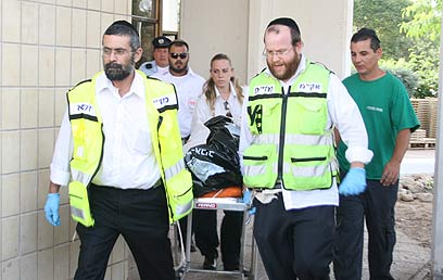 צוות מד"א מפנה את הגופה (צילום: אורן אהורני)
