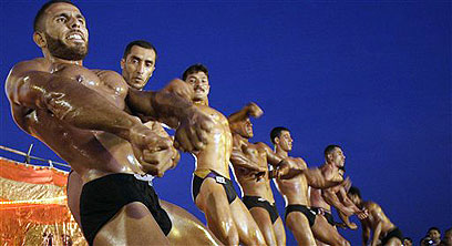 עושים שרירים ברצועת עזה: כ-20 גברים, תושבי הרצועה, התמודדו אמש (יום ו') על התואר "מר עזה" מול קהל נלהב של 500 צופים, שהגיעו לצפות בשרירנים.