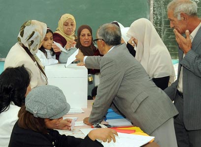 אחוז הצבעה גבוה. נשים מצביעות בבחירות, אתמול (צילום: AP)