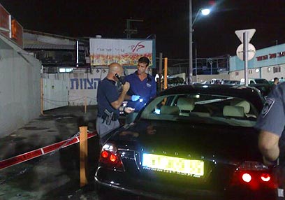 שוטרים בוחנים את מכונית החשוד (צילום: אבי כהן)