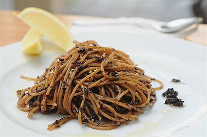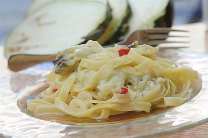פטוצ'יני עם חציל קלוי, צ'ילי ושמן זית