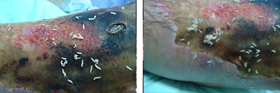 תמונות קשות: התולעים כירסמו את הנמק מהכוויה