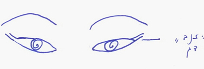 - לגברים - עיניים קטנות וארוכות שצורתן כחצי ירח, מבריקות/לחות עם סיומת ארוכה בסופן הדומה ל"זנב של דג", מבטיחות מגנטיות וסקס אפיל.