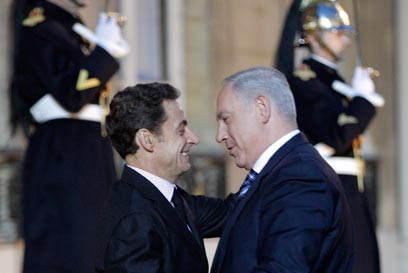 אחרי הפגישה בארה"ב עם אובמה, נחת רה"מ בפריז לפגישה בארבע עיניים עם נשיא צרפת - וזו נערכה בסוויטה הפרטית שלו, והתארכה שעה יותר מהמתוכנן. כמו בוושינגטון, גם בפריז נחתמה הפגישה ללא מסיבת עיתנאים. סרקוזי הזכיר כי מחר מגיע אסד לביקור בפריז - ונתניהו השיב במסר חד משמעי