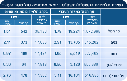 מנגד, אחוזי הנשירה בקרב תלמידים יוצאי אתיופיה נמוך מזה של כלל התלמידים שלומדים בעברית,