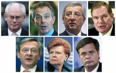 27 מנהיגי היבשת נפגשים בבריסל כדי לבחור את הנשיא ושר החוץ הראשונים של אירופה. המועמדים הבולטים ביותר: הרמן ון-רומפי הבלגי לתפקיד הנשיא ומיגל מורטינוס הספרדי לשר החוץ