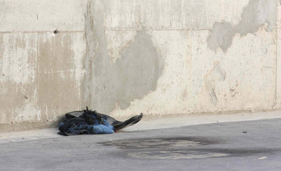 בגדיו המפויחים של הפועל. פונה במצב קשה לביה"ח (צילום: עידו ארז)