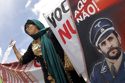 כ-200 בני-אדם, מרביתם נוצרים אוהבי ישראל, בני הקהילה הבהאית וגם חברי הקהילה היהודית במדינה – התכנסו מחוץ למקום פגישתם של אחמדינג'אד ולולה כשהם עונדים סרטים ירוקים, כצבע האופוזיציה באיראן, שורקים במשרוקיות ורוקדים. אחת המפגינות, דניאלה היישי (30), חברת הקהילה הבהאית, אמרה ל-ynet: "אחד מהעקרונות שלנו הוא איחוד האנושות כולה, לכן אנחנו לא מצדדים באף צד בקונפליקט. חשוב שיהיה דיאלוג, העמדה שלנו היא לא נגד ביקורו של אחמדינג'אד בברזיל וגם לא נגדו אישית, אנחנו רק רוצים שתיפסק הפרת זכויות האדם באיראן".