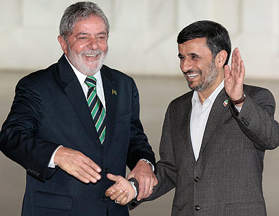 פגישה בברזיל. אחמדינג'אד ולולה (צילום: AP)