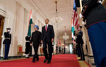 קבלת פנים מלכותית. אובמה וסינג בבית הלבן (צילום: AFP)