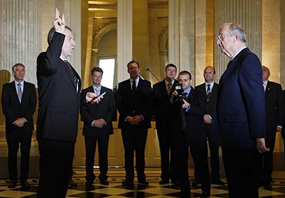 המלך אלברט השני משביע את לטרם (צילום: רויטרס)