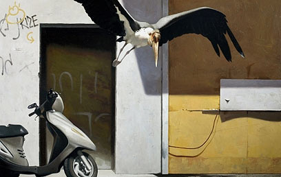 "לציפור יש פאתוס גבוה ומסוכן לצייר אותה. לרוב אני שותל את הציפורים במרחב הפוסט אנושי", מוסיף רפופורט,