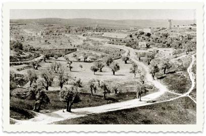 15. תצלום נוסף של דרך חברון מהמאה ה-19, שבו נראית הדרך חוצה את הגיא צפונה לסכר ועוברת לרגלי שכונת ימין משה
