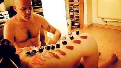 תורן פותח שולחן על גבה של הבחורה. מתוך "אנדרדוגס" (צילום: יח"צ)