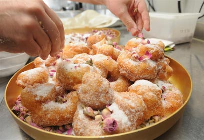 - טובלים את הספינג'ים בסוכר הוורדים, מצפים אותם היטב מכל הצדדים ומגישים.