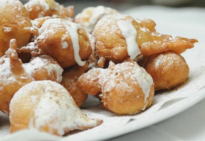 - מרטיבים את כפות הידיים במי הקרח, קורצים חתיכת בצק בגודל כדור "פינג פונג", יוצרים במהירות חור באמצע ו"מותחים" את הצדדים כך שייוצר מעין "בייגלה". מכניסים לשמן ומטגנים כ-2 דקות מכל צד, ומעבירים למגש שרופד בנייר סופג ומצננים מעט.