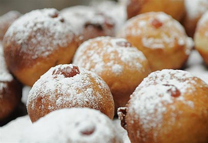 - בעזרת שק זילוף עם צנטר דק או בעזרת מזרק מילוי ממלאים את הסופגניות בריבה. מסדרים אותן על מגש, בוזקים אבקת סוכר ומגישים.