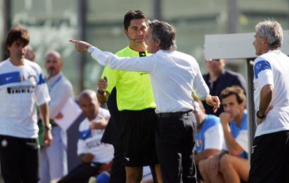 ריצה עונש הרחקה בגלל עימות עם שופט, מוריניו (גטי אימג'ס)