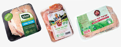 מימין לשמאל: בלדי, עוף טוב, עוף טרי תנובה (צילום: טל שחר)