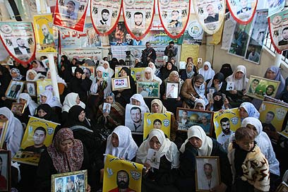 משפחות אסירים פלסטינים בעזה. מחכים להם בבית (צילום: AFP)