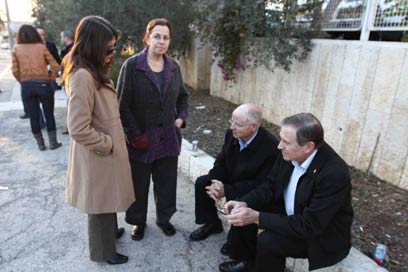 גולדווסר ובני משפחת שליט מחוץ ללשכת רה"מ (צילום: אוהד צויגנברג)