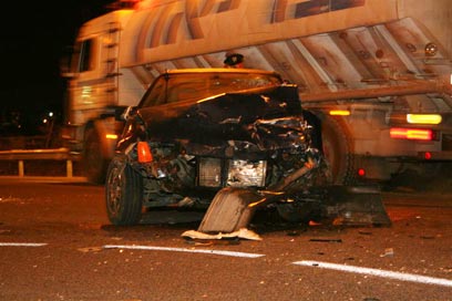 הרכב המרוסק לאחר התאונה בצומת אלונים (צילום: שי וקנין)