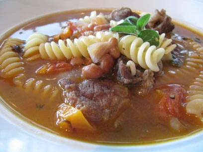 מרק בשר עם שעועית ופוזילי