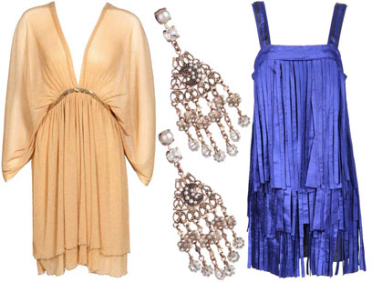 גם עם קלאסיקות אפשר להגזים: שמלה כחולה, סוזי וונג לעלמה ובנקר, 2,700 שקל; עגילים, אמארו, 580 שקל; שמלה בצבע פודרה, רן צוריאל, 990 שקל (צילומים: טל טרי, מוטי פישביין)