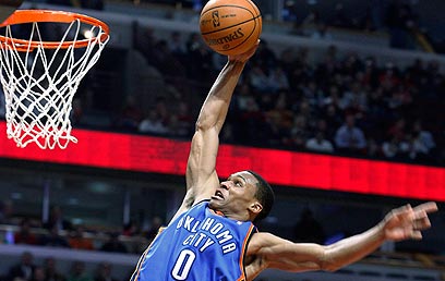 ווסטברוק מטביע את הבולס, הלילה בשיקגו (צילום: AP)