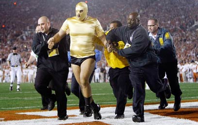 הברנש במסכה פורץ למגרש בעיצומו של הרוז בול (AFP)
