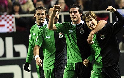 סרחיו קנאלס חוגג עם חבריו בראסינג סנטאנדר (צילום: AP)