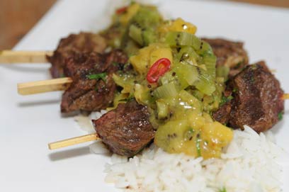 שיפודי טלה עם צ'אטני קיווי-ג'ינג'ר