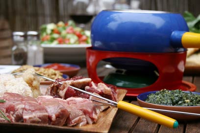 פונדו, הכוכב הזוהר בשמי הקולינריה השוויצרית, אינו רק אוכל חורפי. הוא אירוע רומנטי במקרה של זוגות, או דינמיקה קבוצתית במקרה של חבורת סועדים גדולה יותר. נוסף לפונדו הגבינות המסורתי (שנולד מהצורך להשמיש גבינות אמנטל וגרוייר שהתייבשו) וששורשיו נעוצים הרחק במאה ה,17- התפתחו ברבות השנים גם גרסאות מתוקות של המאכל השיתופי (פונדו שוקולד,( וגרסאות קרניבוריות (פונדו בשר.( במקרה של הבשר, אפשר למצוא מנות המבוססות על עיקרון דומה גם במטבח היפני (שאבו שאבו,( ואף במטבח הסיני – שם טובלים את הבשר במים רותחים או בציר, במקום בשמן רותח כמו במערב.