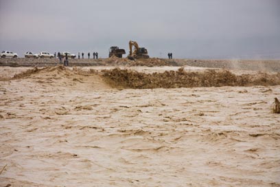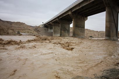 כביש 25 היורד מדימונה אל עבר צומת הערבה היה רטוב וחלק. המשכנו מזרחה ופנינו לכביש 2499 המוביל אל עין תמר ונאות הכיכר. שיירה ארוכה של מכוניות ומשאיות ניצבה בשולי הדרך, שאותה חסם נהר רחב שניתק את שני היישובים מהציוויליזציה.