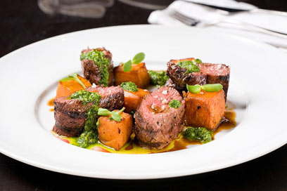 נתח קצבים עם ירקות כתומים ופסטו פטרוזיליה