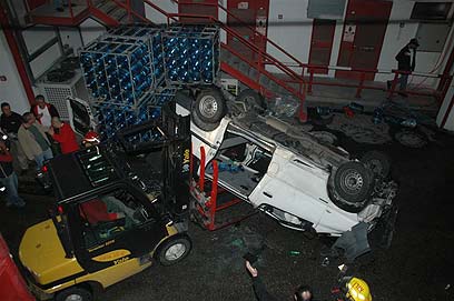 הרכב התהפך מסיבה שאינה ברורה לתוך מפעל המשקאות (צילום: עוזי ברק)
