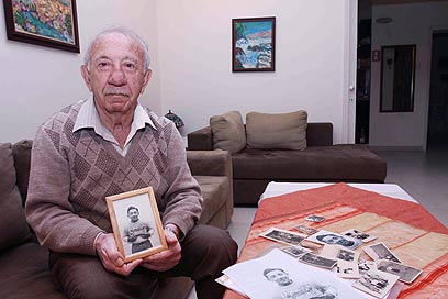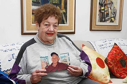 ברטה כרמי עם תמונת בעלה המנוח. זיהתה אותו בתמונה (צילום: עידו ארז)