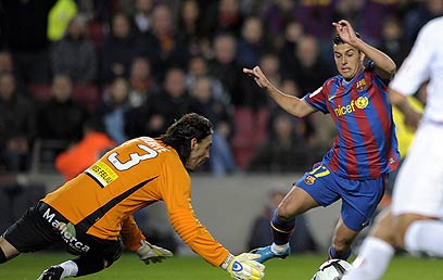 כובש מול ספורטינג חיחון. השחקן הכי מבוקש בברצלונה (צילום: AFP)