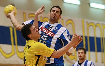 אשכנזי מאס"א ו-ויריץ' ממכבי תל אביב. ירדו מנוצחים היום (צילום: טל שחר)