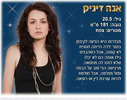 עלינו ממינסק לקיבוץ מחניים ומשם לחצור הגלילית ומאז שאני בת 6, אנחנו גרים בצפת. גדלתי בבית שהמודל שלו היה חינוך רוסי, שדרש הישגיות. למדתי לנגן על פסנתר מגיל 5 עד 15, כל יום ניגנתי ולא אהבתי, אבל עשיתי את זה בשביל אמא. אחרי 10 שנים פרשתי, הפסנתר עדיין נמצא אצלי, הוא חלק מהנוף של הבית, אבל אני לא פותחת אותו. יש לי ממש טראומה ממנו. חוץ מהנגינה למדתי במרכז לאמנות מחול וגם שרתי במקהלה. מגיל 14 אני מדגמנת בקטן בצפון. דוגמנות מאז היא יותר מחלום. עשיתי תצוגות, הצטלמתי לבגדי כלה ואני מרגישה שהבמה היא חלק ממני, על הבמה ומול מצלמה, אני מרגישה הכי טוב.