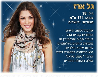 בוגרת תיכון רנה קאסן במגמת צרפתית ותיאטרון ועומדת להתגייס לצה"ל.
